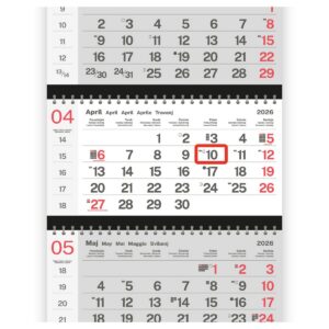 Koledar 4-DELNI BARVNI S SPIRALO ČRN 2026
