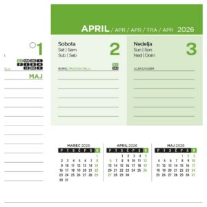 Koledar NAMIZNI POKONČNI POSLOVNI ZELEN 2026