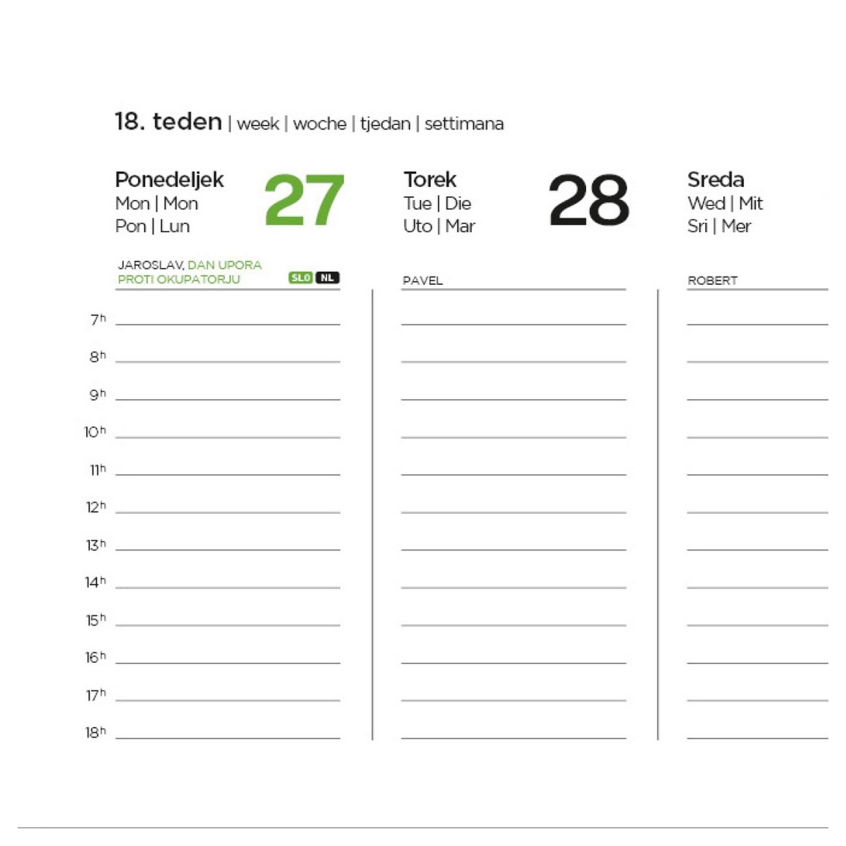 – označeni slov. in tuji prazniki, imena, lune, tedni