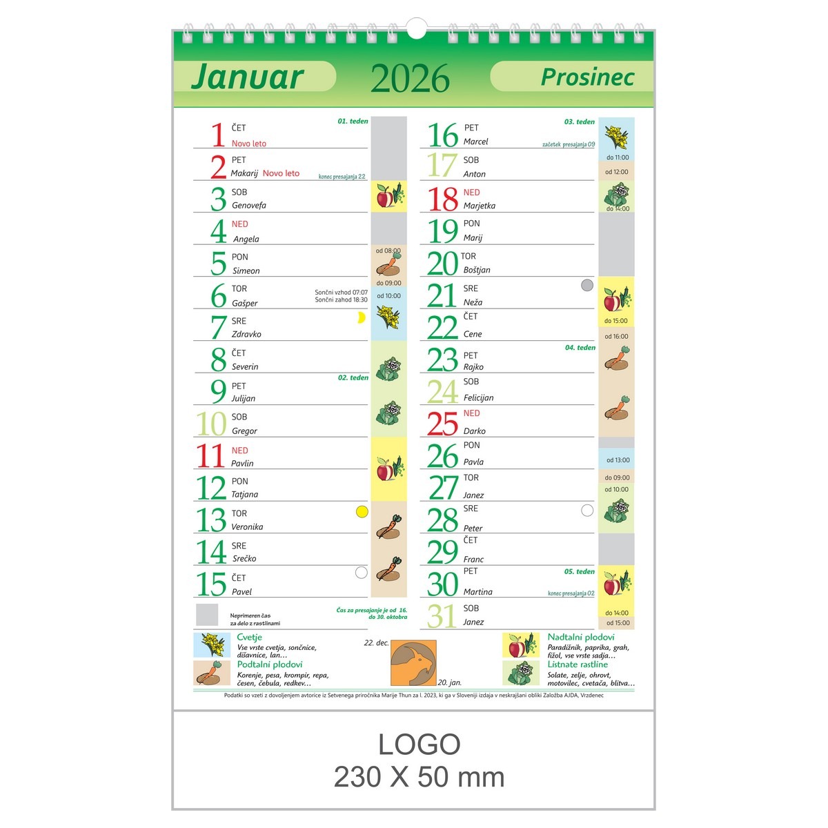 prazniki: označeni slovenski in tuji prazniki, lune, imena