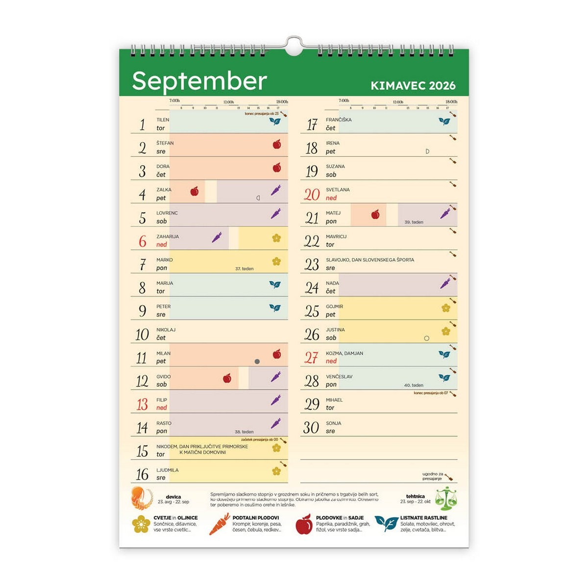 – prazniki: označeni slovenski prazniki, lune, imena, čas za setev