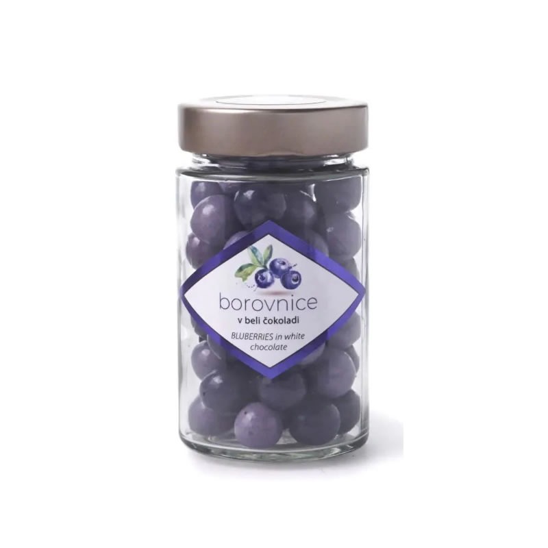 Kroglice BOROVNICE OBLITE Z BELO ČOKOLADO 125G