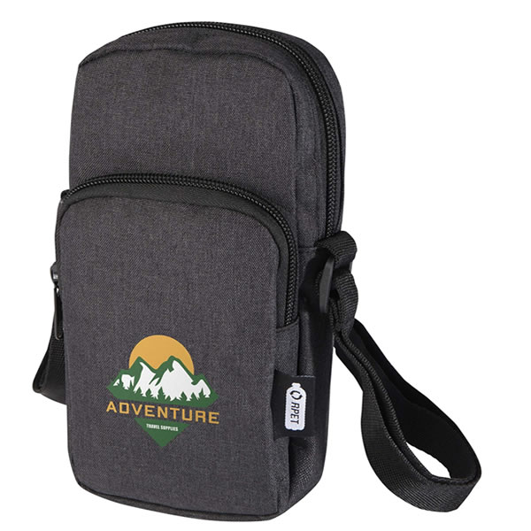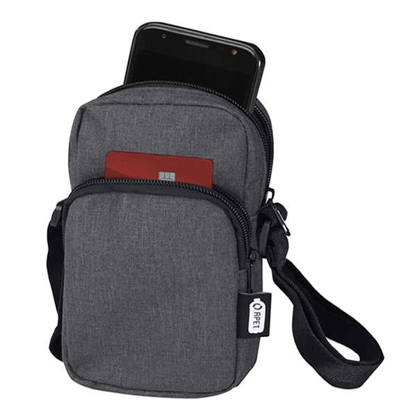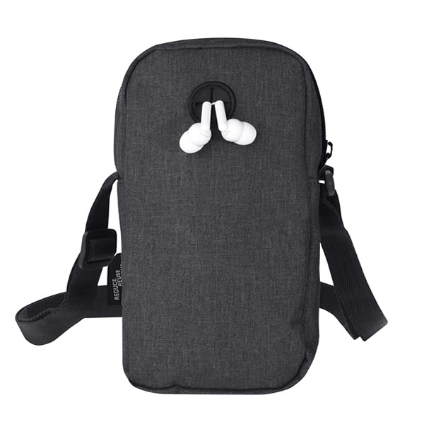 Reciklirana torbica za telefon s certifikatom Ross GRS zagotavlja varnost telefona in priročno dodatno shrambo s sprednjim žepom z zadrgo za majhne dodatke. Z nastavljivimi trakovi (do 140 cm) je praktičen in eleganten potovalni spremljevalec za današnji digitalizirani svet.