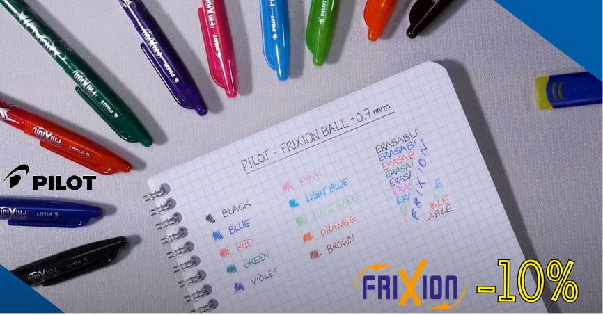 Odpravljanje napak sedaj ne bo več problem! Nova tehnologija vodilnega ponudnika pisal Pilot se je prilagodila najmlajšim in vsakemu zmotljivemu posamezniku. Gel pisalo Frixion navduši z udobnim načinom pisanja in z izjemno tekočim pisanjem. Napisano lahko enostavno zbrišete z gumijasto okroglino na vrhu pisala in ponovno napišete.