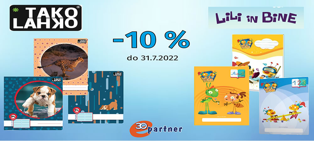 Učenje ni bilo nikoli tako lahko. V veliko pomoč sta tukaj še prijatelja Lili in Bine. Zvezki znamk Tako Lahko in Lili in Bine so namenjeni našim najmlajšim šolarjem. Izdelani so iz 100% recikliranega papirja, ki ne vsebuje belil. Zvezki so odličen pripomoček za šolske začetke pa tudi za zahtevnejše predmete. Ujemite ugodnost s klikom na spodnji gumb.